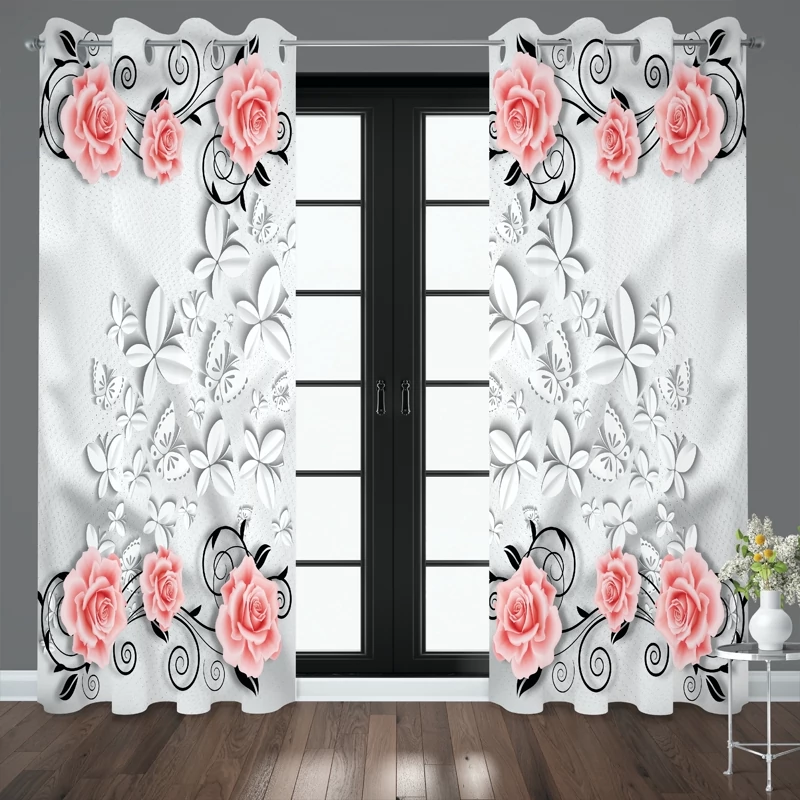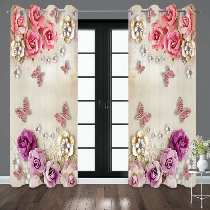 فروش پرده های سالنی و اتاق خواب طرح گل سه بعدی