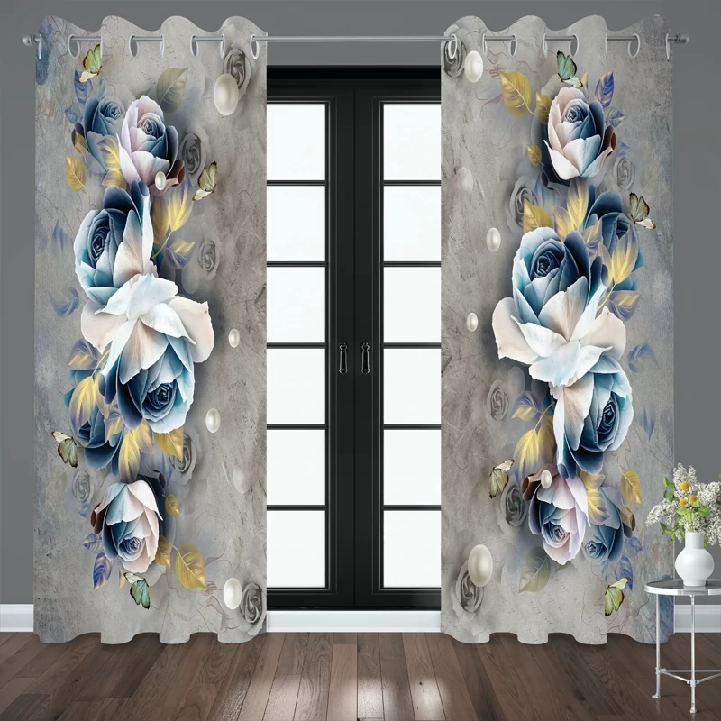 فروش پرده های سالنی و اتاق خواب طرح گل سه بعدی