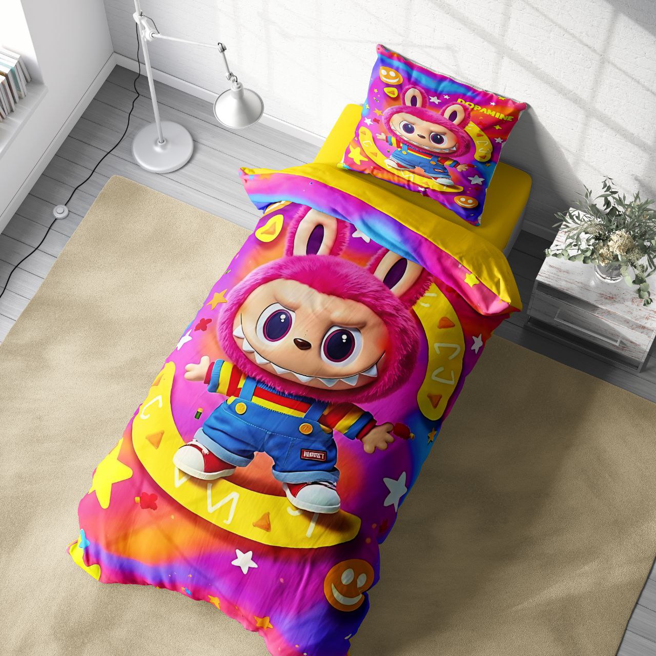 سرویس روتختی یک نفره طرح لبوبو با طراحی فانتزی و رنگبندی شاد، گزینهای ایدهآل برای دکوراسیون اتاق خواب کودکان و نوجوانان است. پارچهی مخمل باکیفیت و لطیف این روتختی، حس نرمی و گرمای دلچسبی را هنگام خواب ایجاد میکند و جلوهای لوکس و مرتب به تخت شما میبخشد.