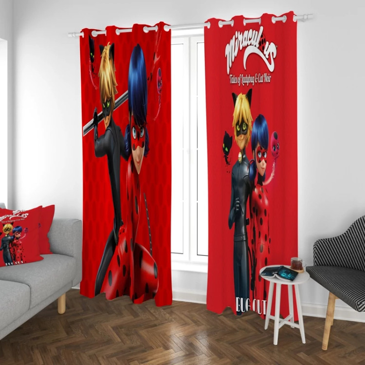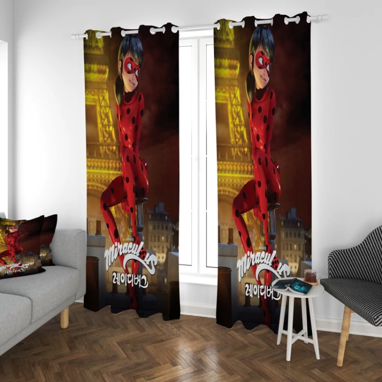 پرده اتاق کودک طرح دختر کفشدوزکی